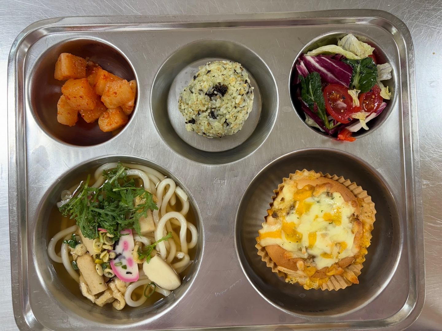 후리가케김주먹밥(1.2.5.6.9.13.16.18)미니어묵우동(1.2.5.6.7.9.13.18)깍두기(9)조각피자(1.2.5.6.10.12.13.15.16)유자청샐러드(자율)(12.13)* 에너지/단백질/칼슘/철663.3/25.4/360.7/2.5